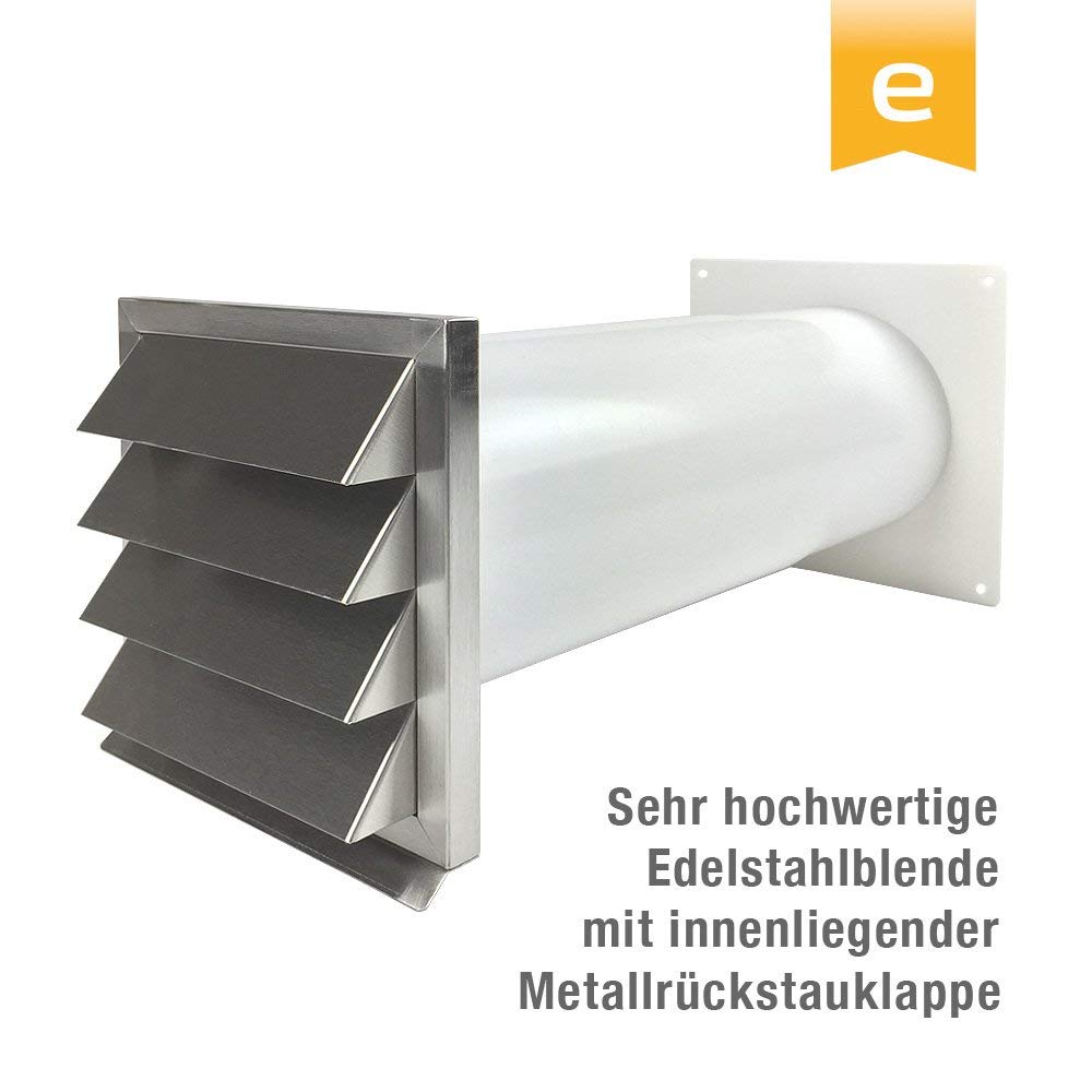 • Edelstahl-Blende mit stabiler, innenliegender Metallrückstauklappe